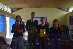 The essays and drawings were evaluated by teachers and representatives from NELUMBO Nepal, based on predetermined criteria. Prizes were awarded to the winners at the end of the program by Mr. Baikuntha Prasad Bhandari (Ward Chairperson, Machhapuchhre Rural Municipality-07), Mr. Yam Bahadur Gurung (Chairperson, School Management Committee), Mr. Bhim Prasad Bhandari (Program Coordinator, NELUMBO Nepal), and Mr. Budhi Mijar (Principal, Shree Prithvi Narayan Secondary School, Dhampus).